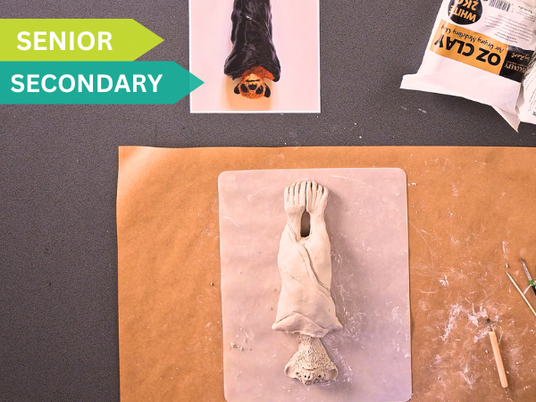 Students will explore sculptural techniques by creating a clay hanging bat inspired by Fruit Bats by Yorta Yorta artist Lin Onus. They will develop an understanding of cultural storytelling, form, and texture through making, painting, and reflecting on their work.