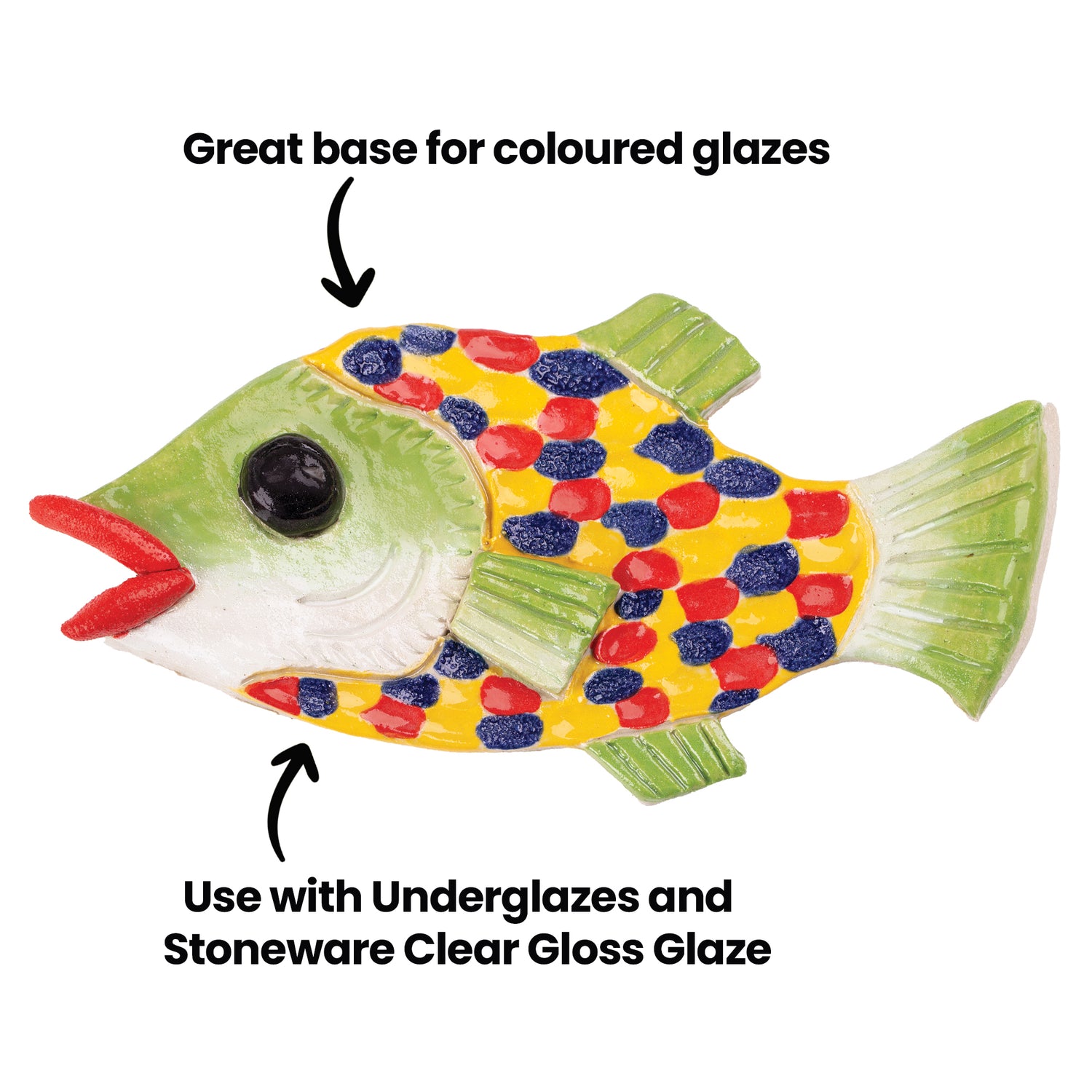 - Great base for coloured stoneware glaze decoration